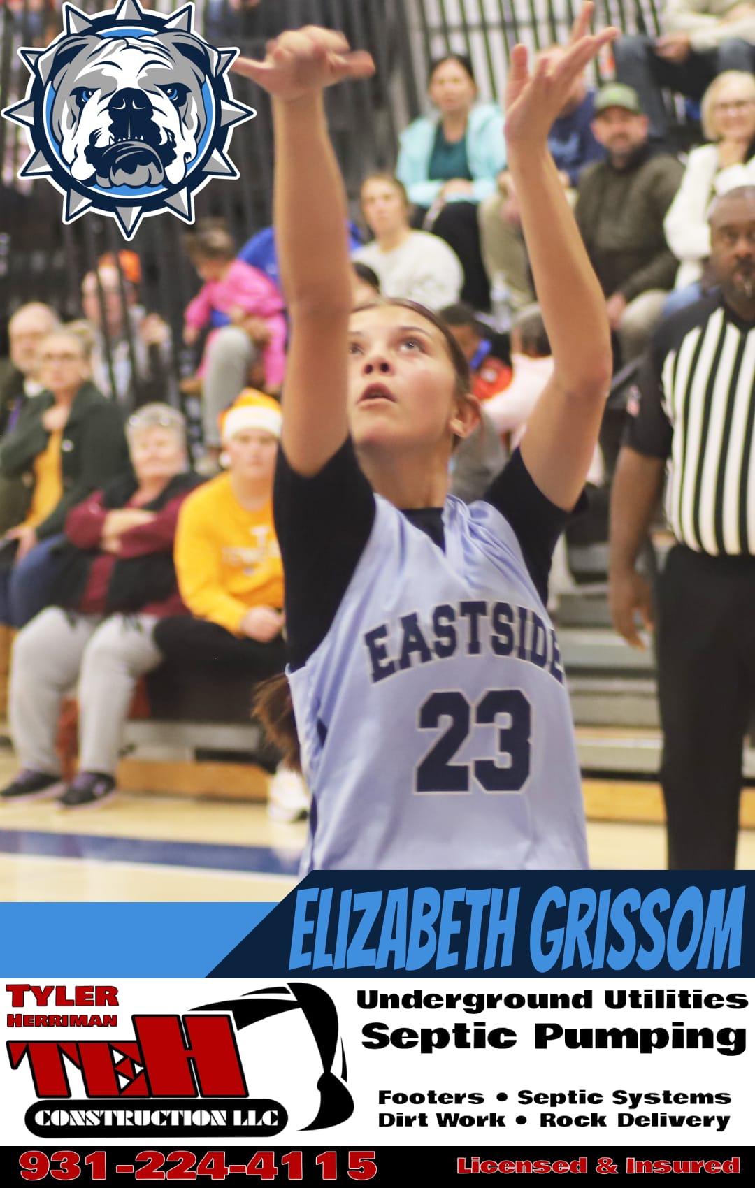 Grissom was Eastside’s most dependable contributor in Week 1, scoring 6 against Irving College and adding 2 more in Monday’s game at Dibrell. She battled on the boards, handled pressure and provided the scoring punch Eastside needed to stay competitive. Her effort and leadership remain central to the Lady Bulldogs’ identity.