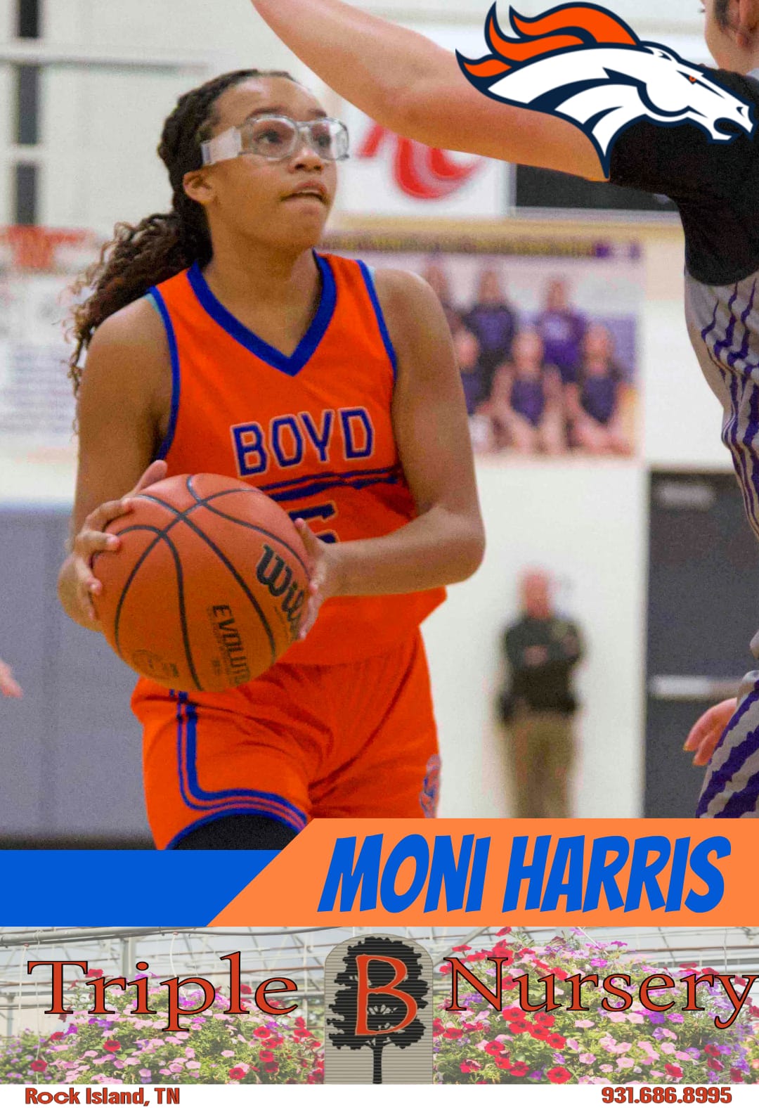 Harris delivered a defining performance in Boyd’s road win at Morrison, scoring a team-high 11 points while anchoring the paint on both ends. Her size and athleticism created problems all night, helping Boyd slow the Lady Eagles’ interior game and control tempo. Harris continues to grow into a go-to post presence, and her effort powered one of Boyd’s most important wins of the season.