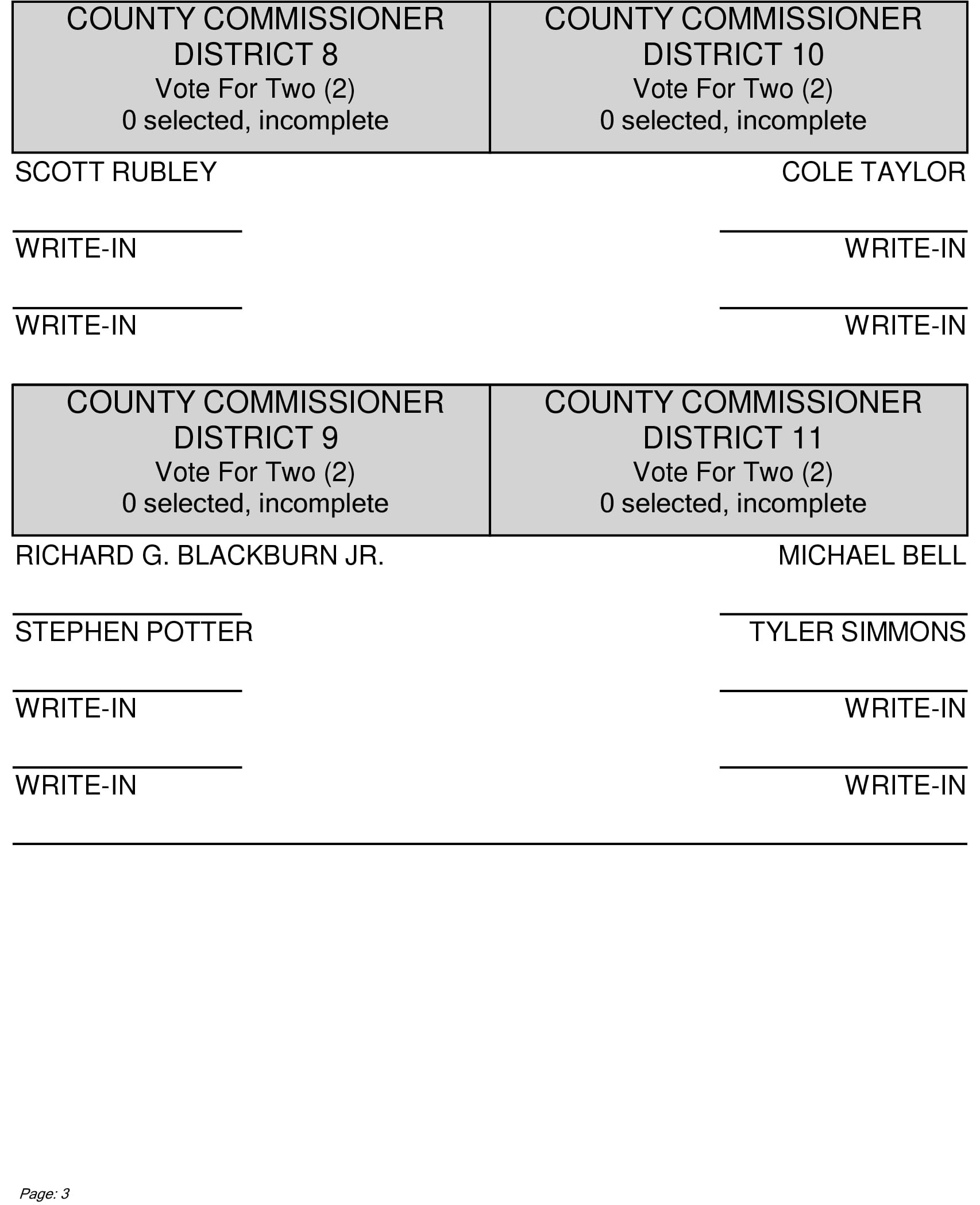 That includes County Commission Districts 2 and 3, where all candidates are running as Republicans. With no Democratic or independent opposition filed in either district, the top two vote-getters in each race will secure the seats, making the May 5 primary the deciding election.