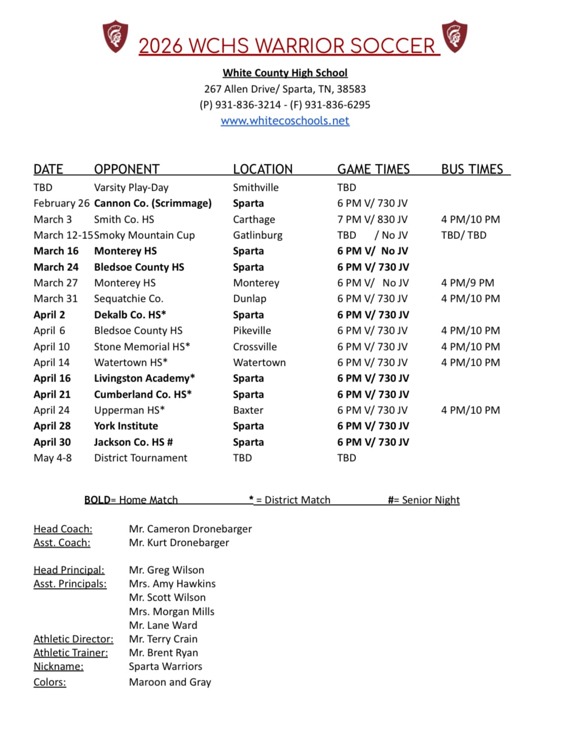 The White County High School Warriors boys’ soccer program enters the 2026 season with a firm sense of identity, a returning core of playmakers, and a coaching staff that believes this group is capable of taking meaningful steps forward. Head coach Cameron Dronebarger, now in his third year leading White County soccer program, said the team has spent the offseason building a foundation that goes well beyond conditioning or tactical work.