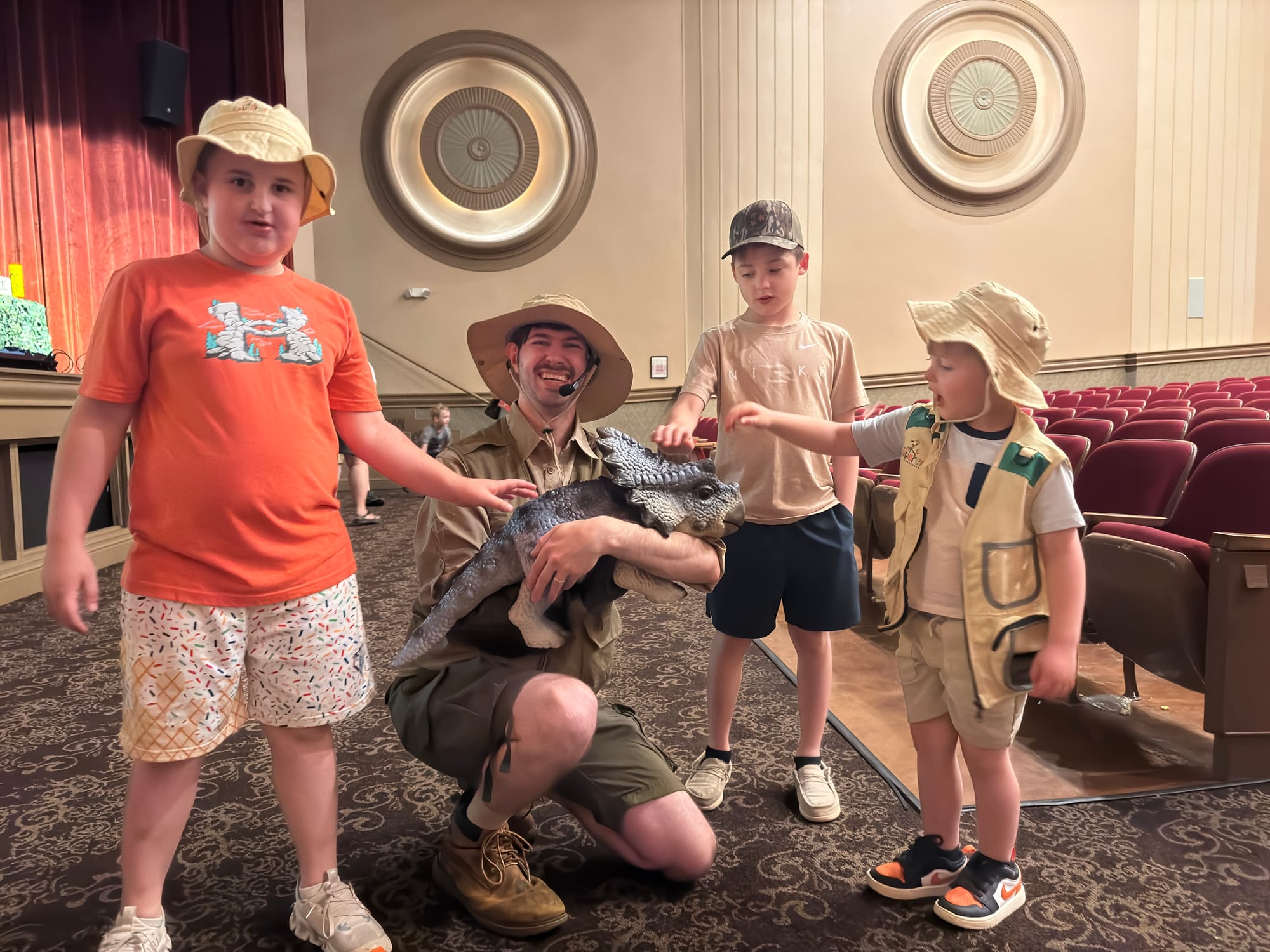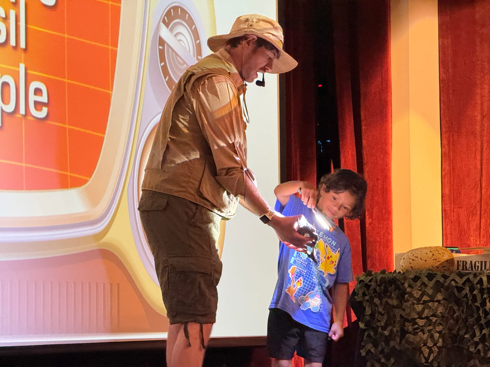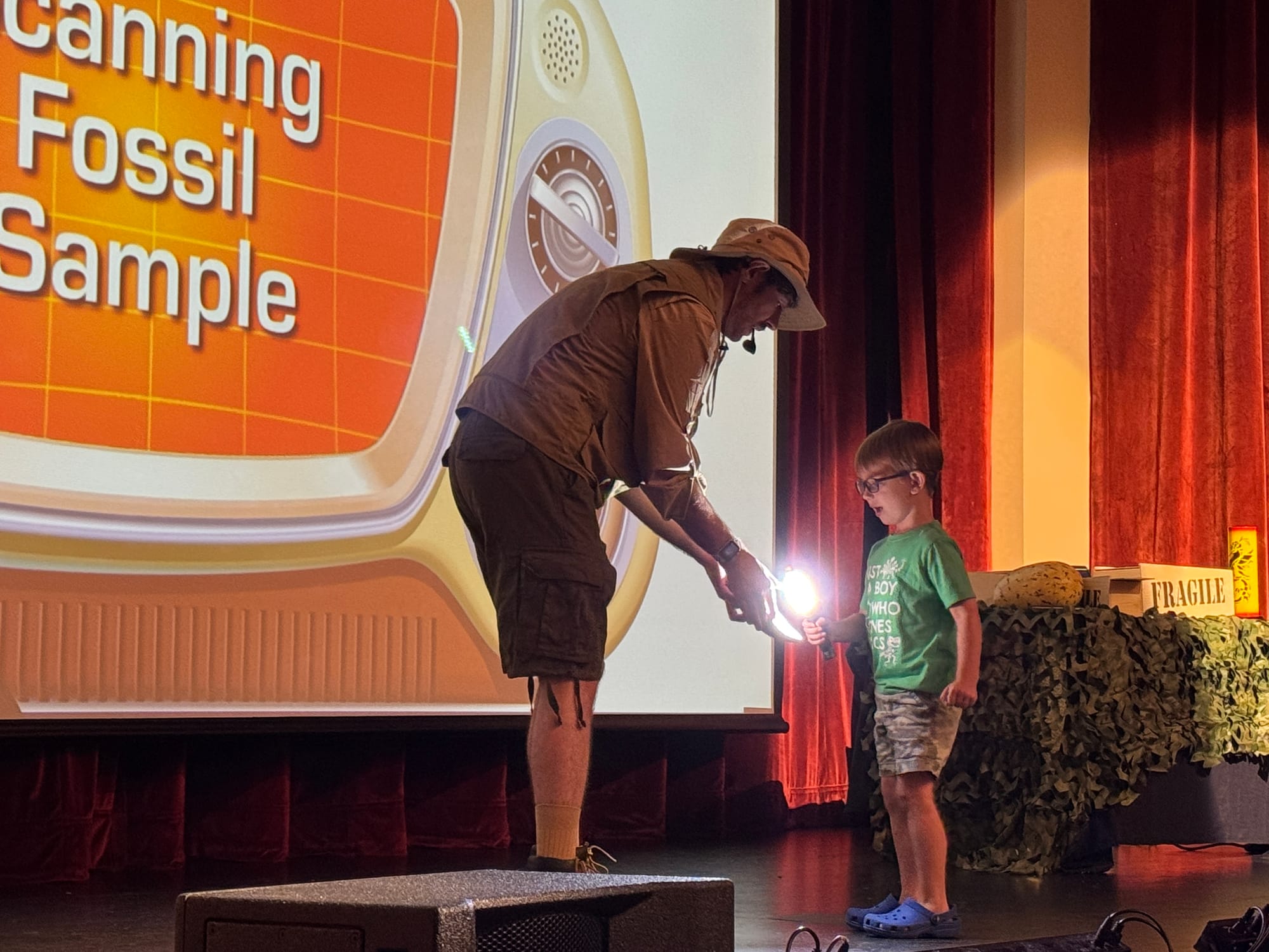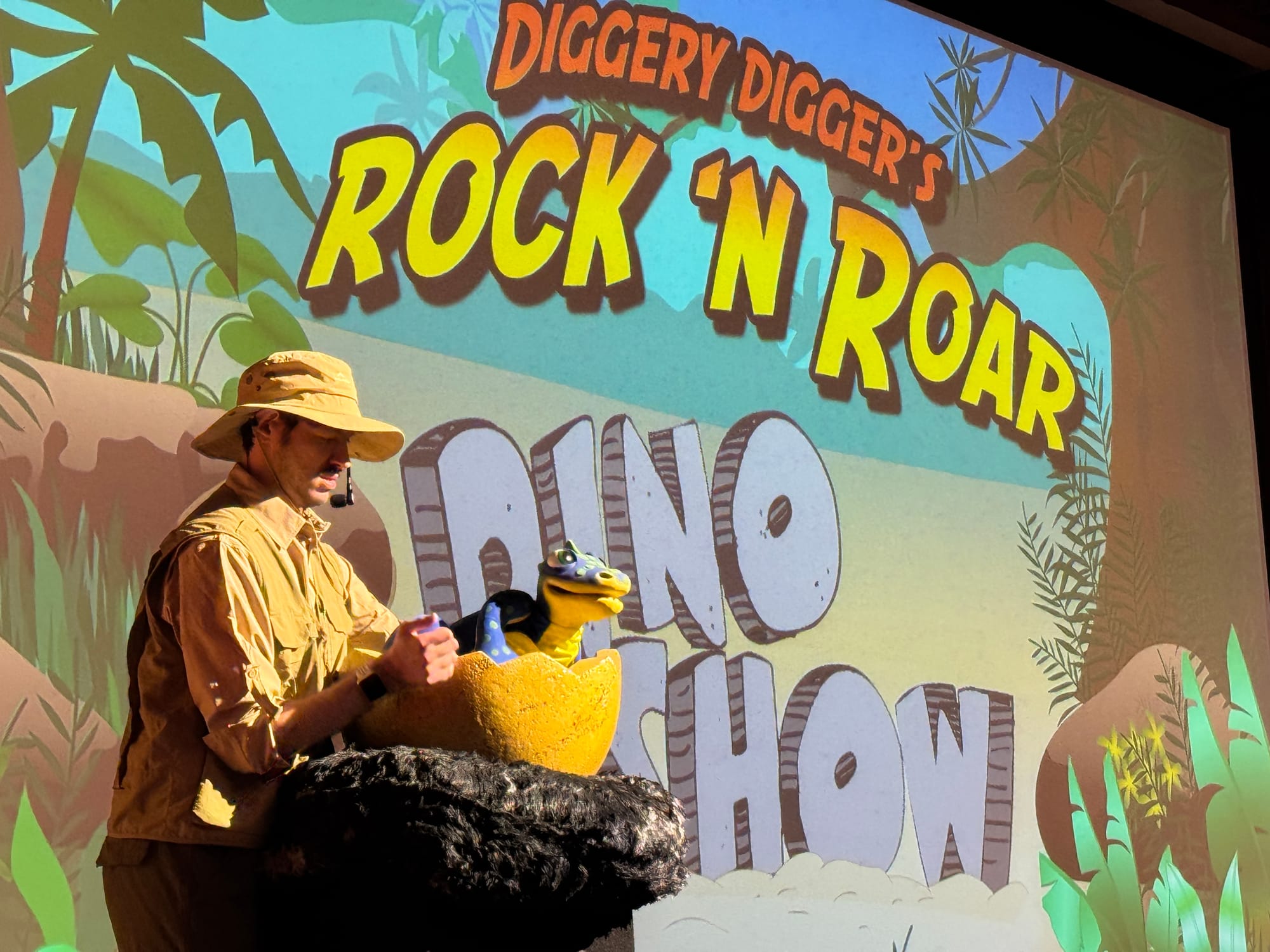 What began as a presentation of fossils from a paleontologist took a turn when the discovery of a top-secret device triggered a series of events, including the hatching of a dinosaur egg. With the help of several volunteers from the audience, Digger and the crowd took a trip through time, learning about dinosaurs and how they lived.