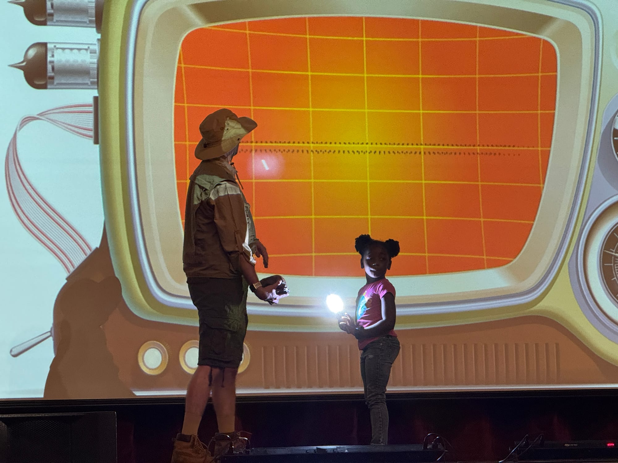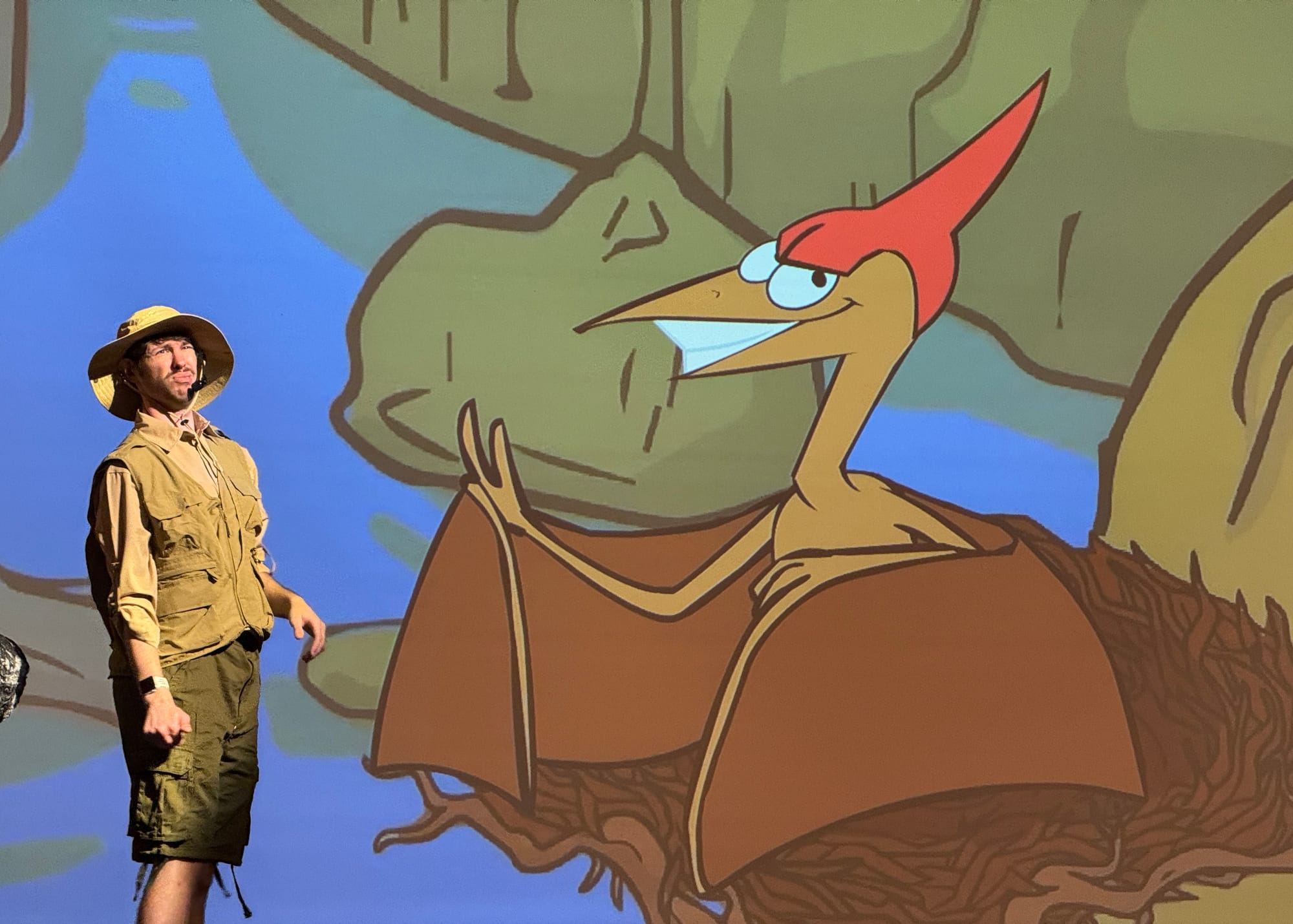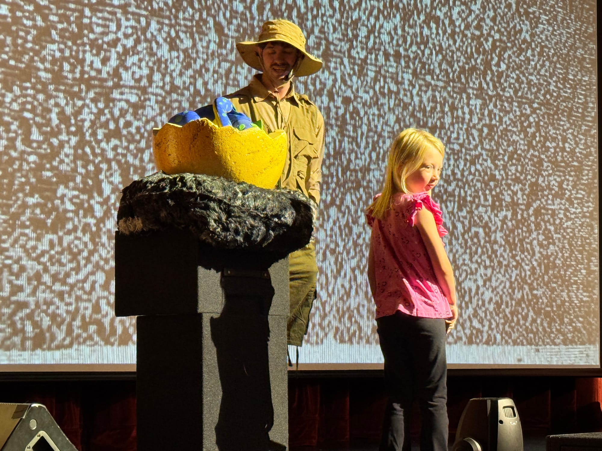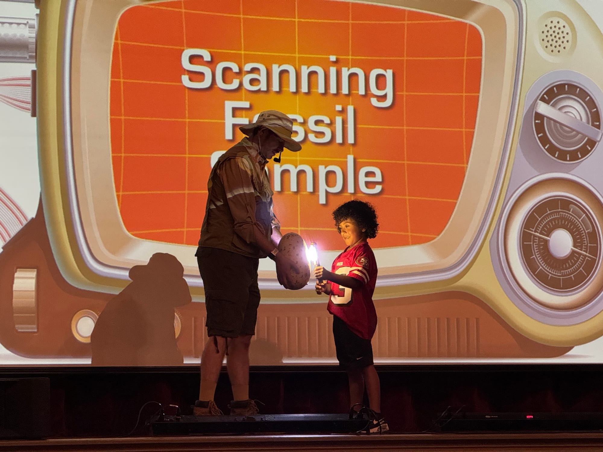 What began as a presentation of fossils from a paleontologist took a turn when the discovery of a top-secret device triggered a series of events, including the hatching of a dinosaur egg. With the help of several volunteers from the audience, Digger and the crowd took a trip through time, learning about dinosaurs and how they lived.