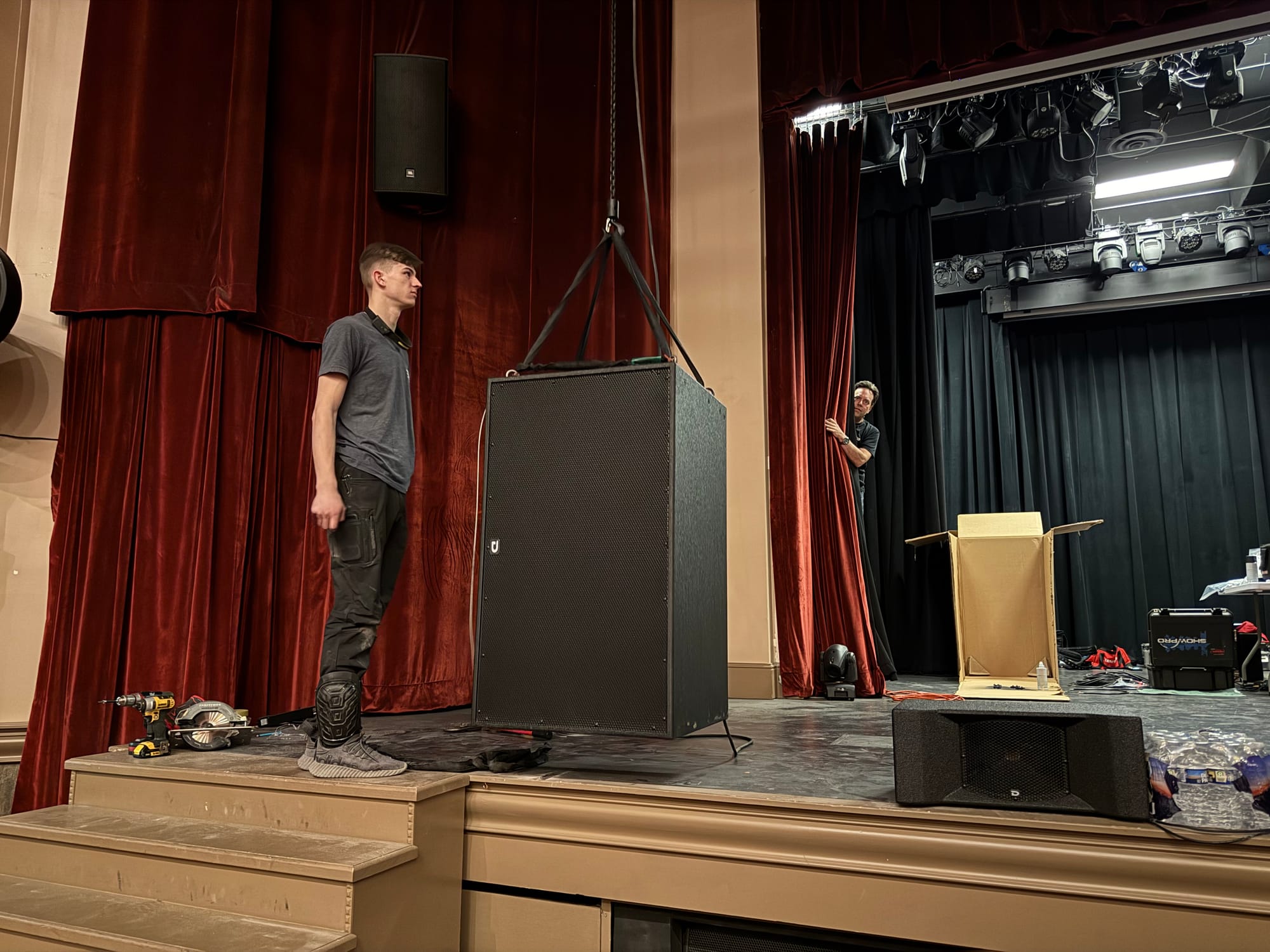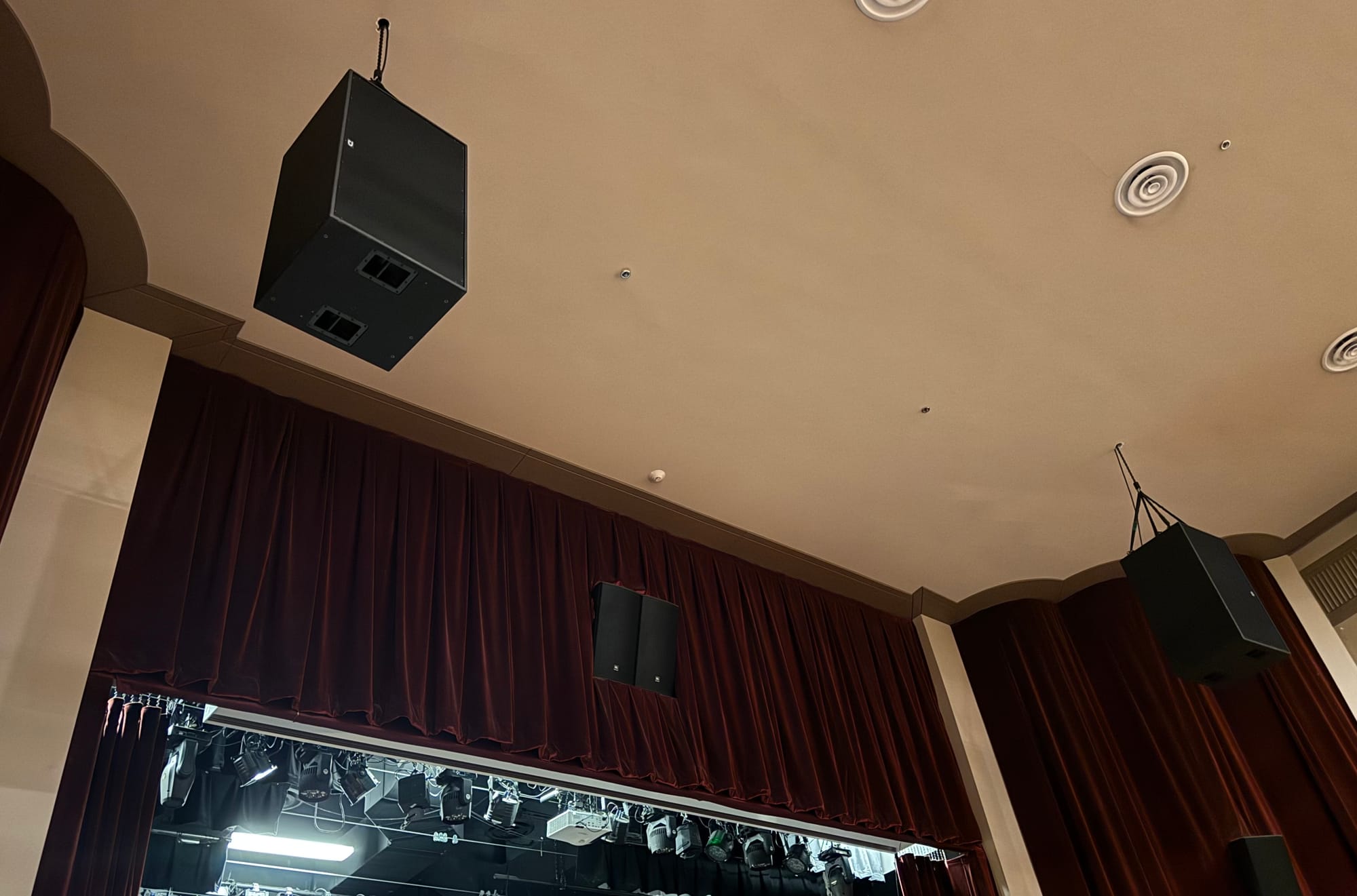 The system is manufactured by Danley Sound Labs in Gainesville, Ga. and provides over double the power and number of speakers that were originally serving the Park Theater. Speakers at the front of the stage are suspended from the ceiling to help better avoid feedback.