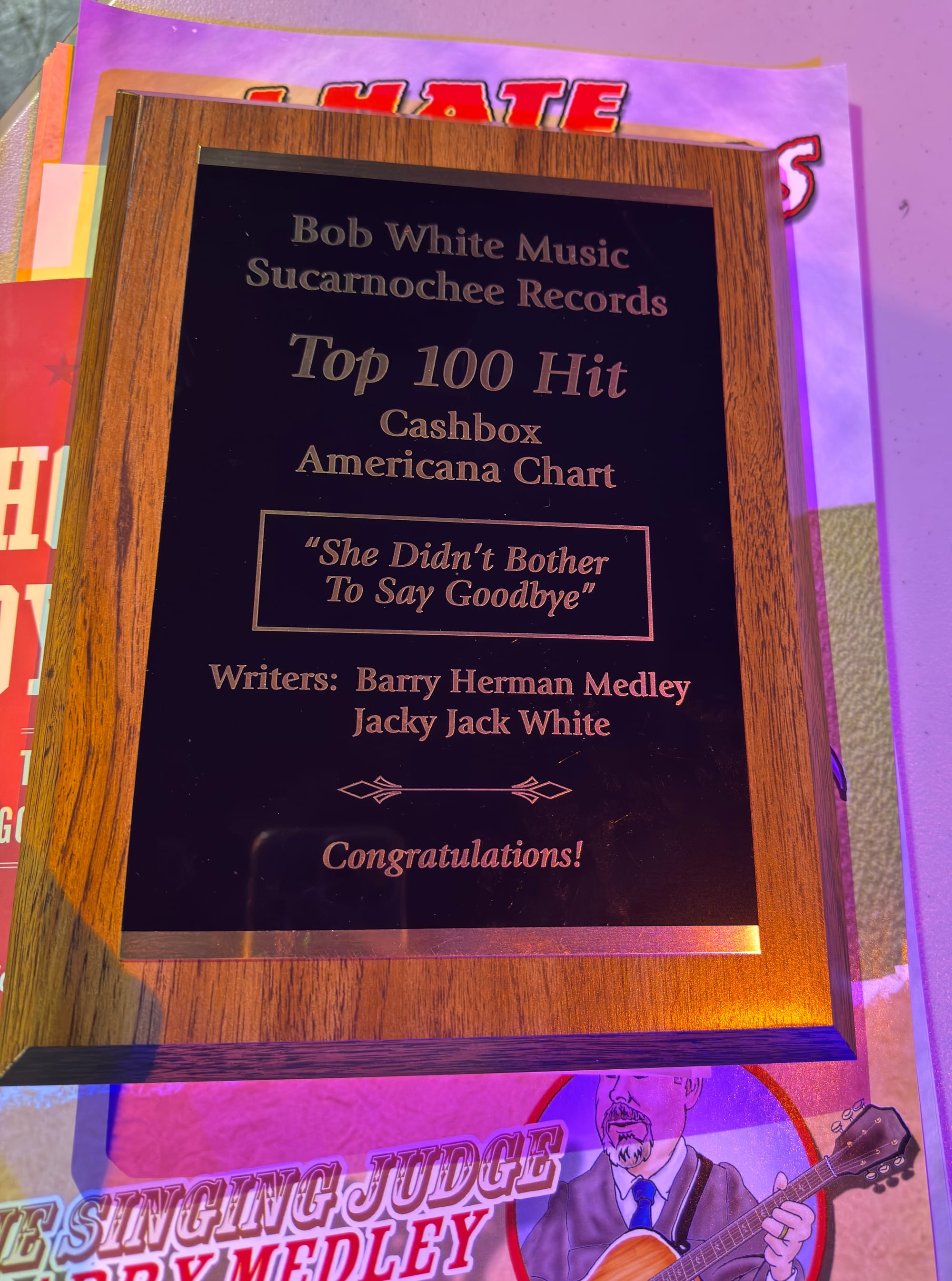 Barry Medley, who served as General Sessions judge in Warren County for 16 years, inked a deal with longtime friend and collaborator Jack Jack White's Bob White Music and Sucarnochee Records during a ceremony at the theater April 27 at noon. The event was free and open to the public.