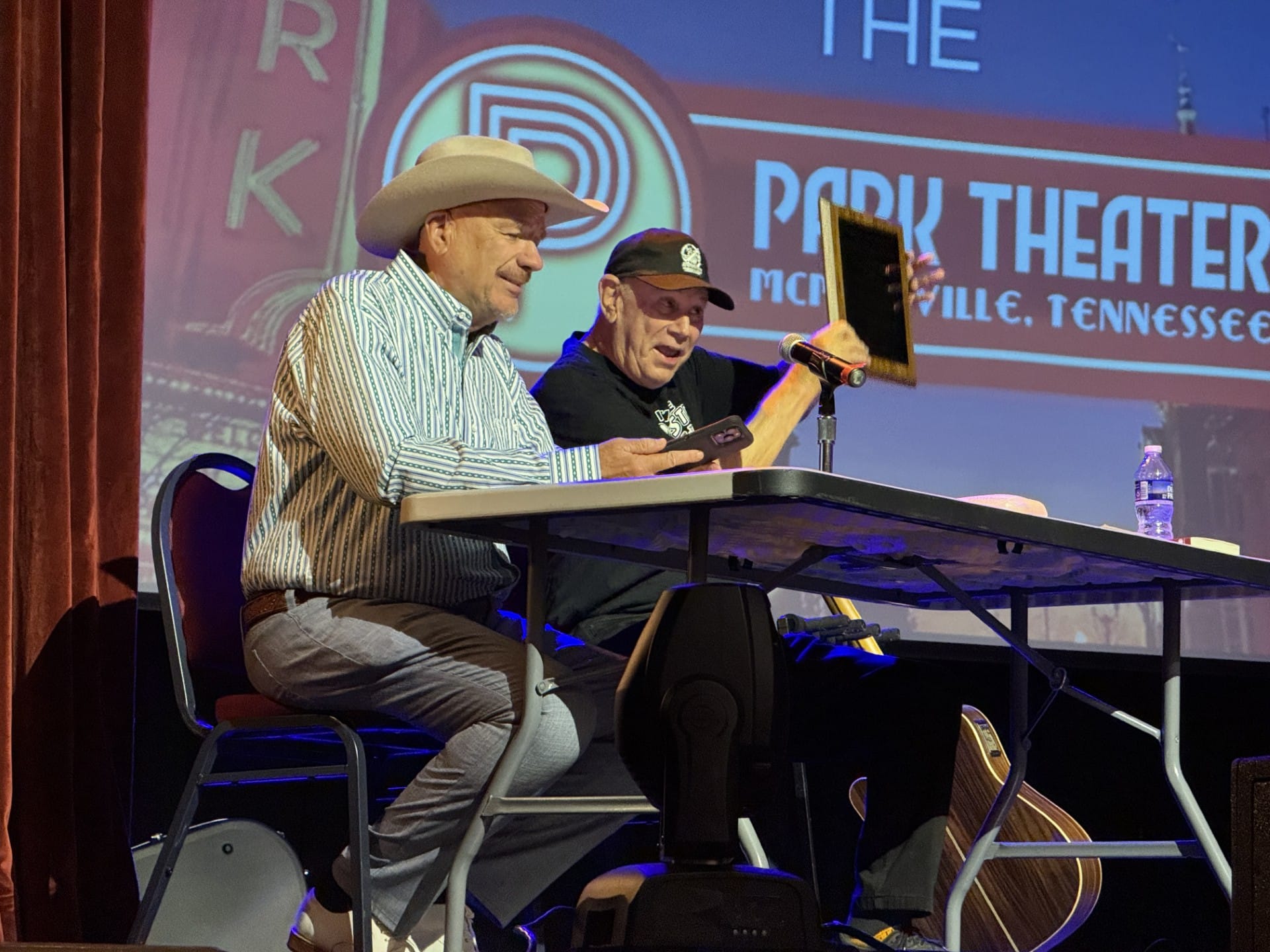 Monday's lunchtime crowd at the Park was treated to the playing of videos for "She Didn't Bother to Say Goodbye," "Rebel Pride," "I Hate Roosters," "Sitting in the Park in the Dark" and "Gracious Lady" on the Park's screen. Then, after a short question-and-answer period, Medley grabbed a guitar and performed "You Can't Get Enough of the Fair" before ceding the stage to White who played "If I Didn't Love You," a hit he wrote for Steve Wariner. The hour-long ceremony was brought to a close with Medley performing a live version of "I Hate Roosters."