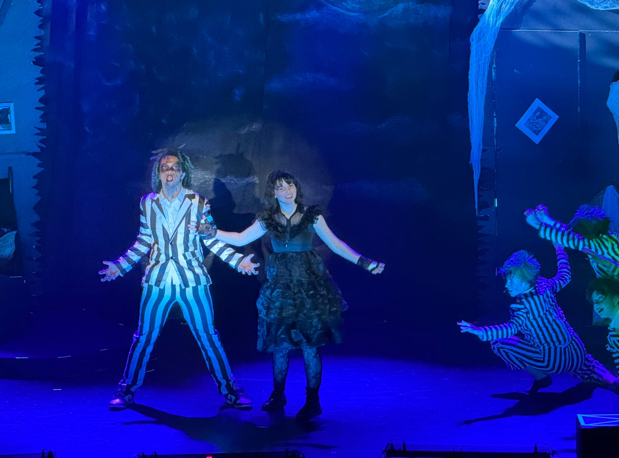 Over 200 hours of preparation and another 200 hours of tech/production design work were evident as the talented cast dazzled the crowd which filled the floor of the theater and special effects and lighting set the surreal mood of the world of Beetlejuice.