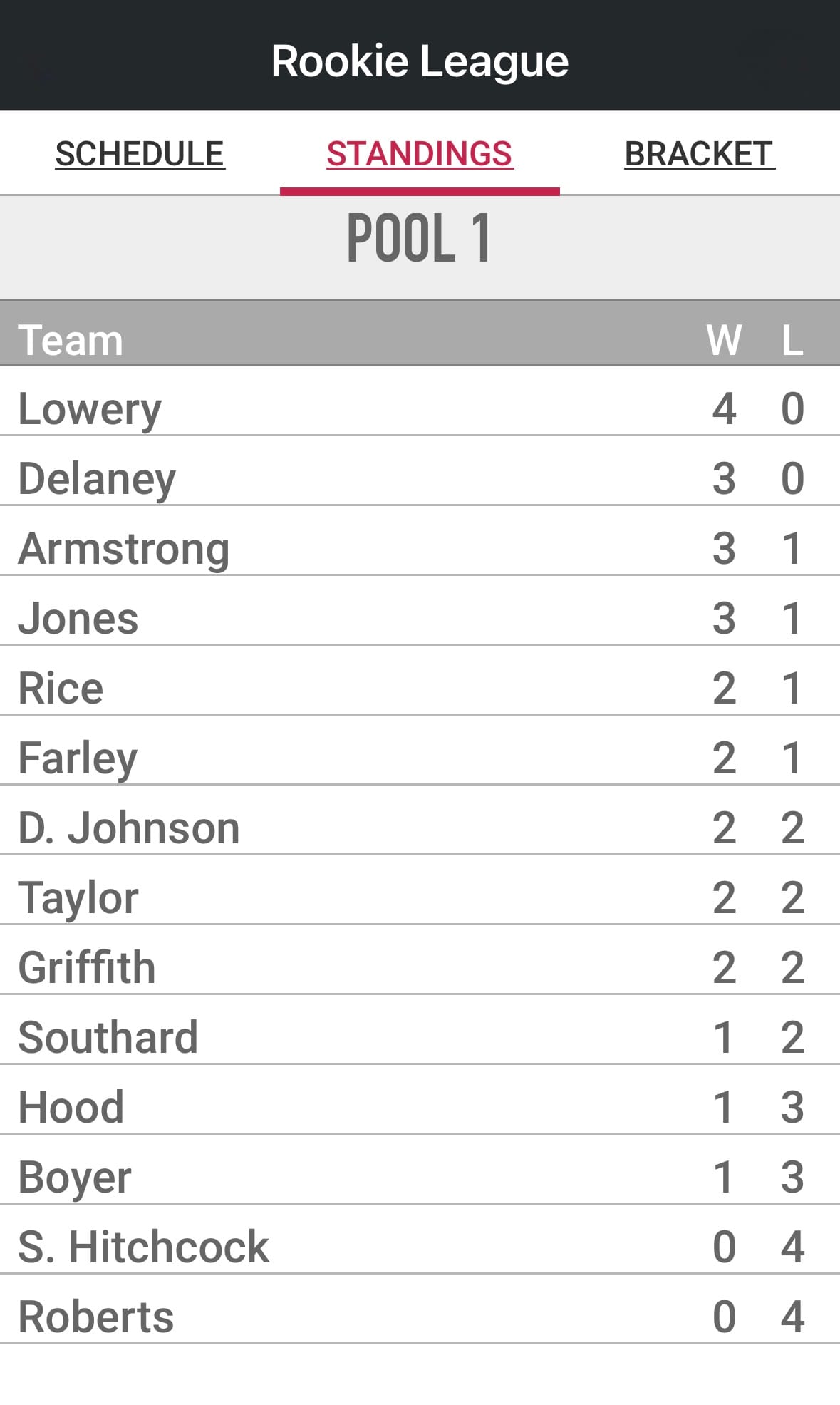 On the Junior Boys side of the courts, there was plenty of action. Bechtal played a double header taking wins in both games with a 31-28 victory over Flatt and then a 32-25 win over Walker. Hitchcock dominated Johnson and came away with the 48-14 victory while Johnson remained undefeated as they doubled up Lumpkin's score to come away with a 32-16 win. It was Smith over Walker, 44-27, in the first of two games, and then they edged out Collins 53-51 in their second game of the day. Collins also played twice, taking a 43-26 decision over Murphy in their first game. American Roofing Company came away with a one-point win over Young to round out the Junior Boys action for the week.