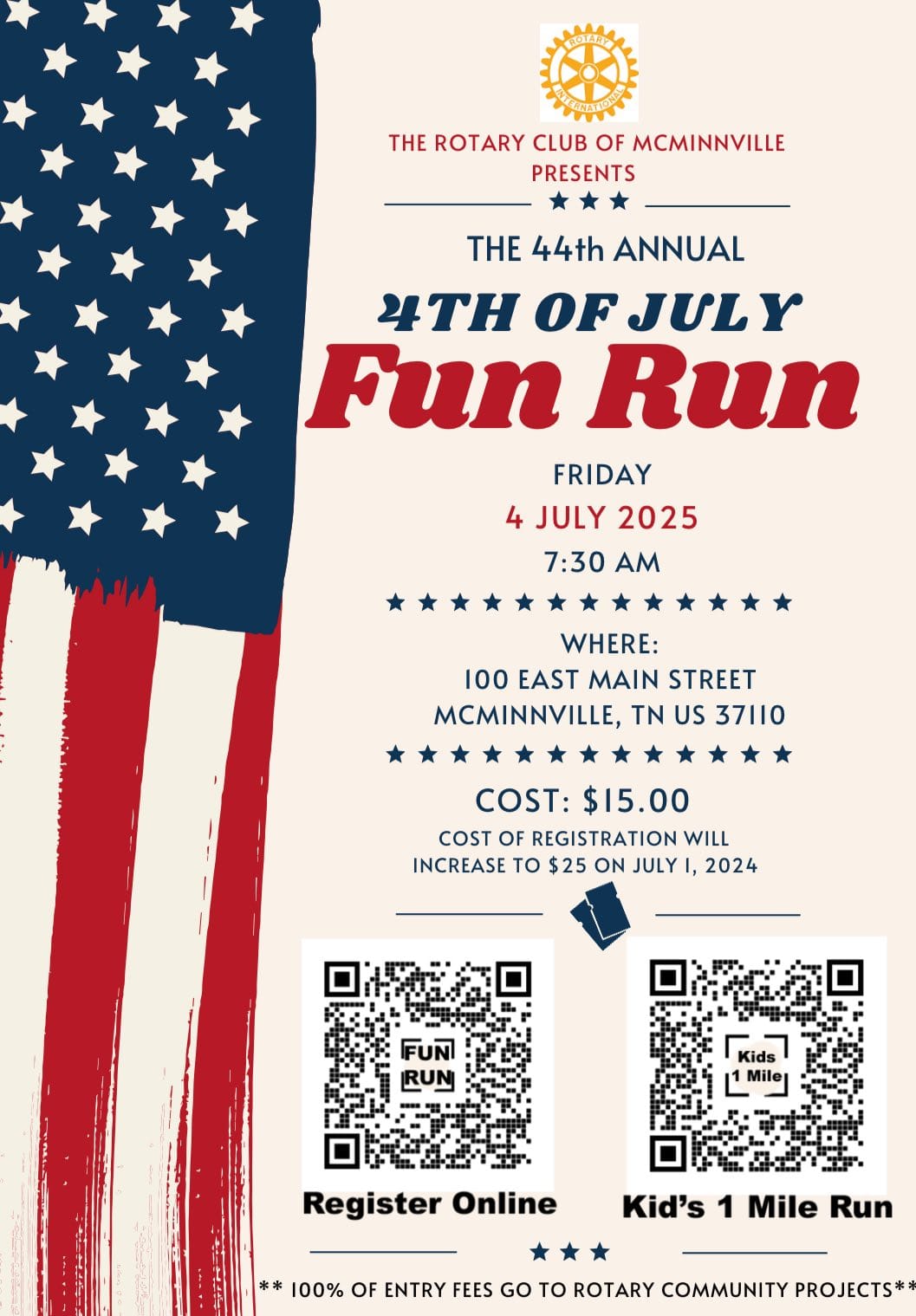 Downtown McMinnville will once again be buzzing with runners and patriotic energy as the 44th Annual Stars and Stripes 5K kicks off bright and early Friday, July 4. Sponsored by the Rotary Club of McMinnville, the beloved Independence Day tradition will begin at 7:30 a.m., with same-day registration starting at 6:30 a.m. on Main Street.