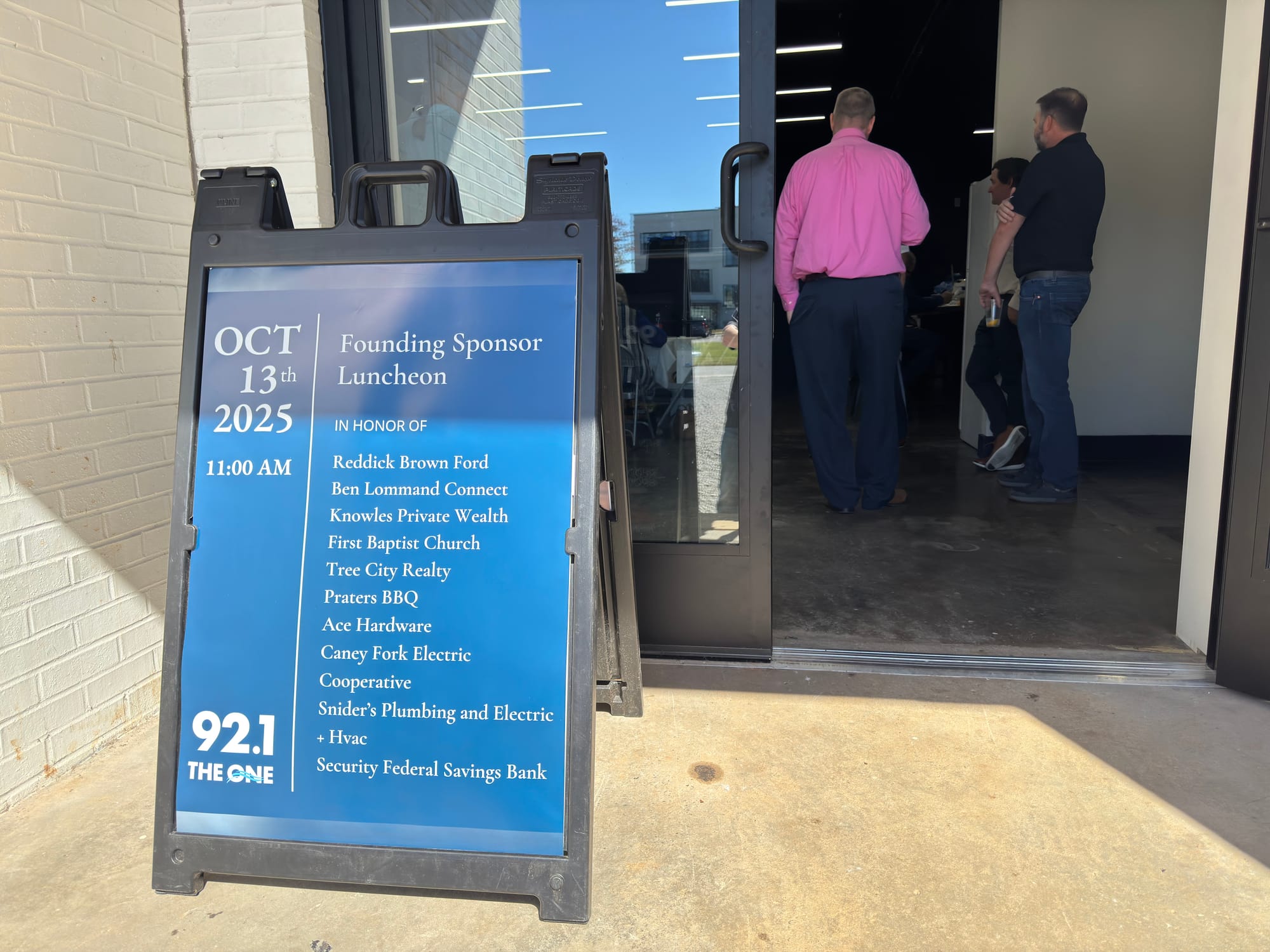 Following remarks by Main Street Media owners Chad Graves and Scot MacDonald, representatives of the founding sponsors, and a prayer by Main Street Media's Justin Reed, The One launched with its first song, "I Thank God." The song was a cover of Maverick City Music's hit, and was performed by the First Baptist Church's praise band, made up of John Templeton, Lorie Kesey, Tyler Morton, Allie Morton, Kenny Johnson and Main Street Media's Rob Nunley.