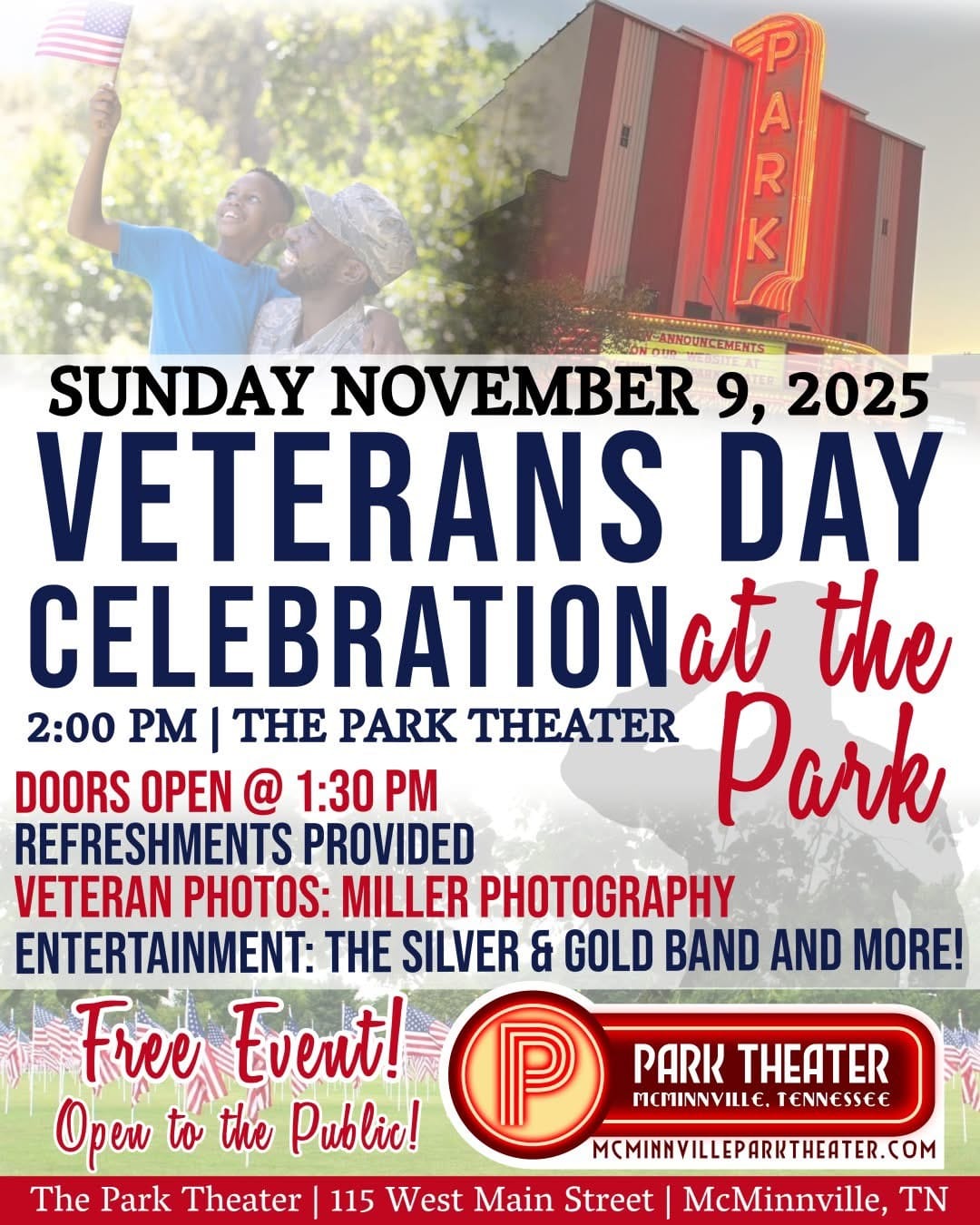 Veterans Day, a federal holiday set aside to honor military veterans of the United States Armed Forces, is observed annually on Nov. 11 and will be marked by several events in Warren County. The 2025 Veterans Day Celebration at the Park will be held Sunday, Nov. 9 at 2 p.m. at McMinnville's historic Park Theater.