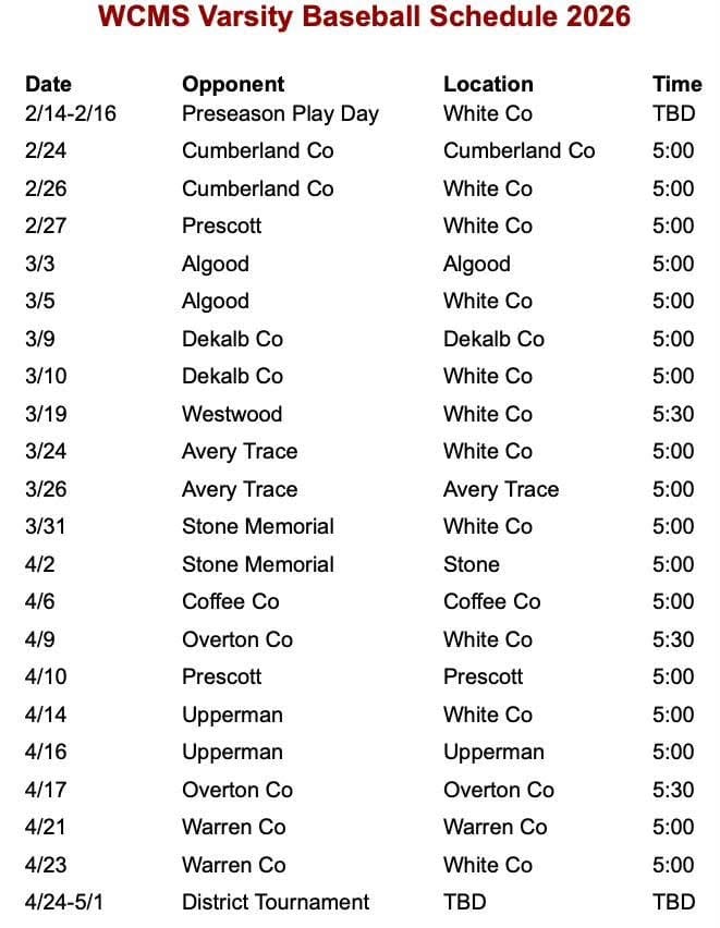 The White County Middle School baseball program enters a new season with the steady guidance of head coach Jonathan Wilkerson, who returns for his second year at the helm. After five total years coaching baseball, one at the high school and now four with the middle school, Wilkerson says this year’s group brings a different kind of energy. It’s a mix of eager 8th graders stepping into bigger roles and a coaching staff working together to build on last year’s foundation.