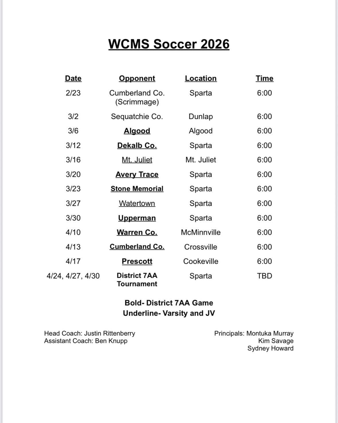 “I have been coaching soccer for 10 seaons over the past 9 years,” he said, adding that he has spent three seasons with the White County High School boys program and just wrapped up his first season with high school Warriorette soccer team. “This will be my 6th and final season with the White County Middle School boys soccer program.”