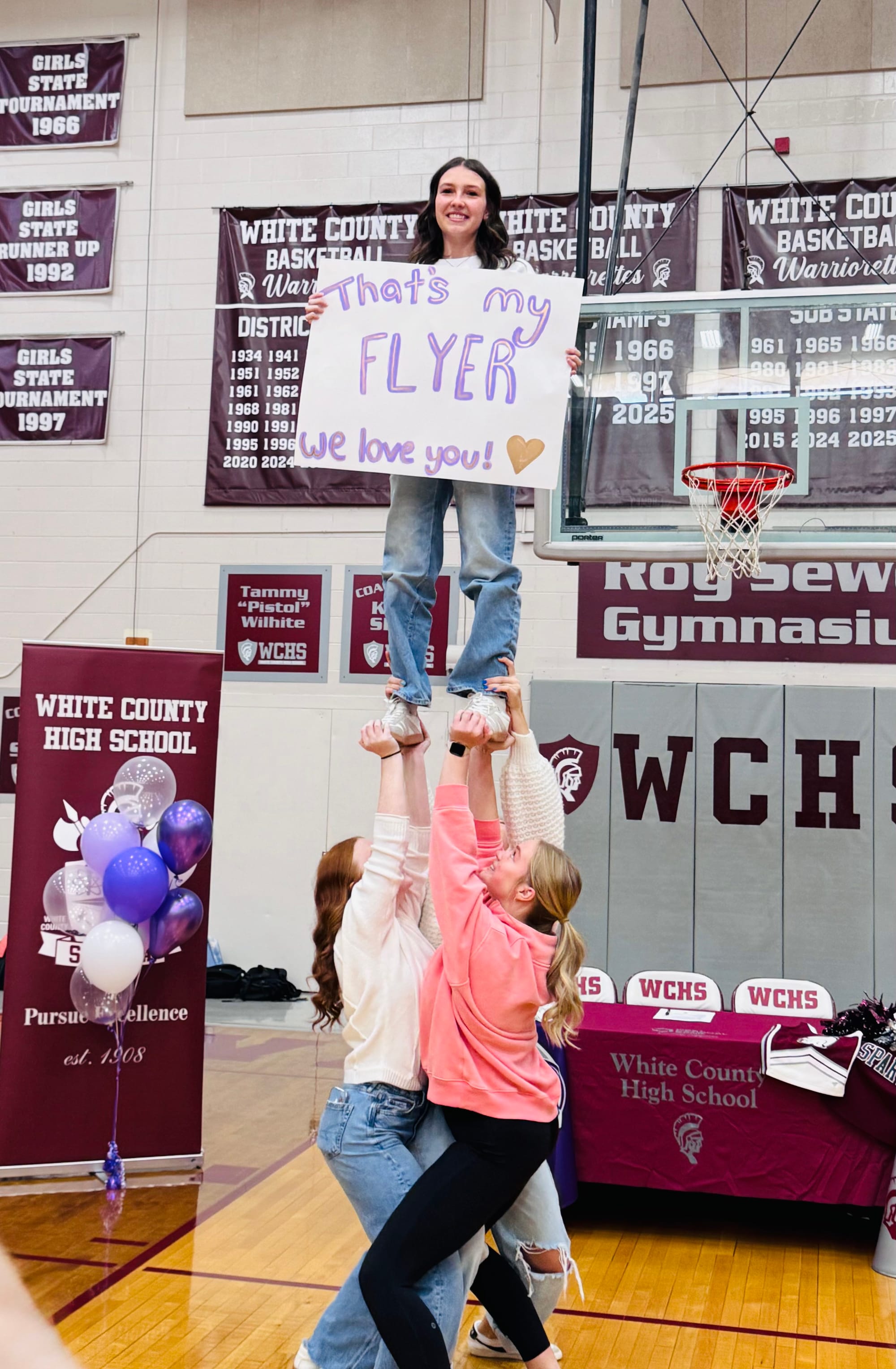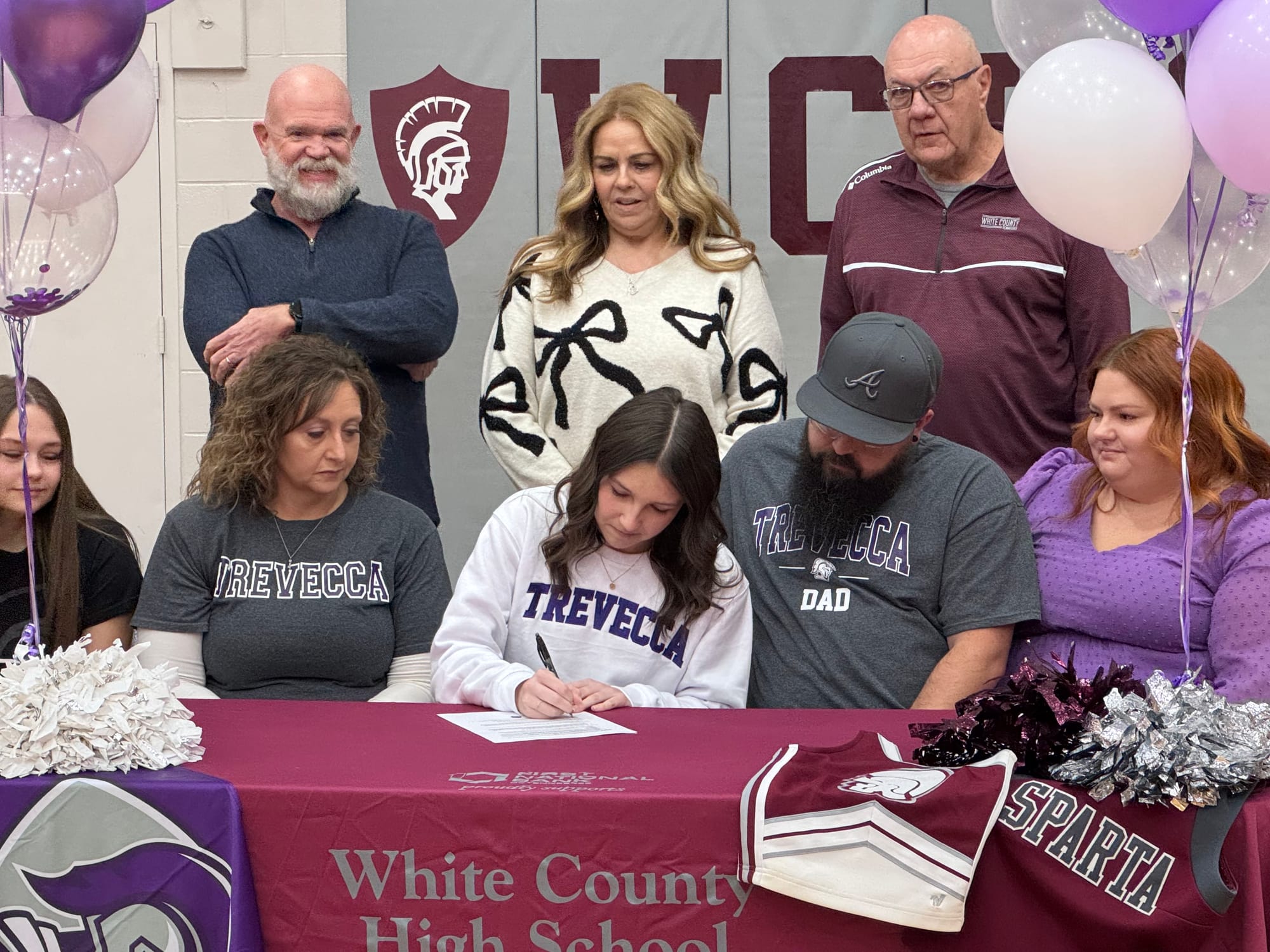 White County’s Harleigh Young signed her National Letter of Intent today. Young is officially trading in the maroon and gray she’s worn for the past three years for some purple and white as she will be joining the Trevecca Trojans cheer squad next year.